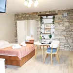 Möjligheter för självhushållning inkluderar ett komplett kök utrustat med ugn. Busshållplatsen Starih Statuta är belägen precis runt hörnet från den här lägenheten.